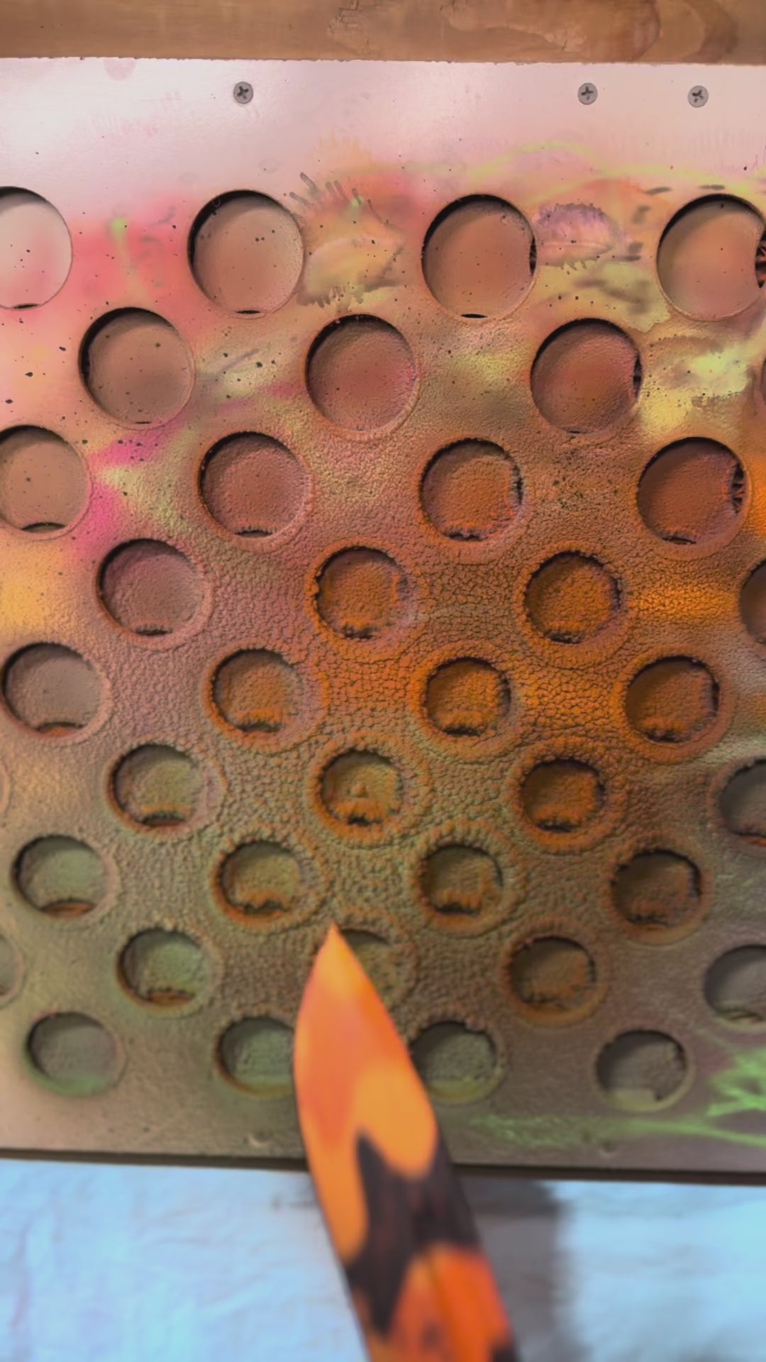 Cerakote colors used: Armor Black, Hi Vis Orange, Tequila Sunrise. Camo pattern with a splatter effect.